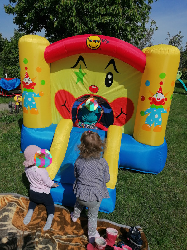In der angrenzenden Gartenanlage habe ich für die Kinder einen Garten angemietet, in dem wir toben, spielen, Gemüse anbauen oder Obst ernten. Die Kinder erleben die Natur mit all ihren Sinnen. Die jährliche Sommerparty mit allen Eltern und Geschwisterkindern ist einer der Höhepunkte im Jahr. Auch unsere private kleine Hüpfburg zum Kindertag lässt alle Augen leuchten.